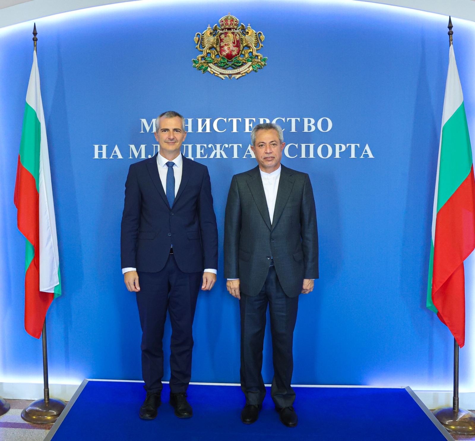 جناب آقای علیرضا ایروش سفیر جمهوری اسلامی ایران در صوفیا در تاریخ 24 آگوست با آقای دیمیتار ایلیئف وزیر ورزش جمهوری بلغارستان ملاقات نمود. طرفین در این نشست در خصوص مسائل دوجانبه ورزشی، مسائل مربوط به جوانان دو کشور و گسترش همکاری‌ها تبادل نظر و گفت و گو کردند.