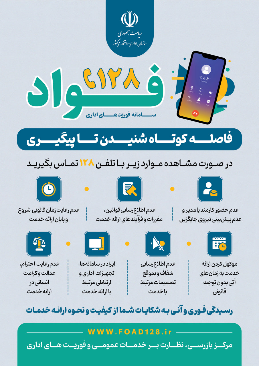 با توجه به اهمیت رسیدگی فوری به امور مراجعین به ادارات دولتی، سامانه فوری رسیدگی به نظرات و شکایات مردمی ایجاد  شده است. مراجعین محترم نمایندگی‌ها می‌توانند با شماره گیری 128 در داخل کشور و با شماره گیری 989371280000+ نظرات ، پیشنهاد ها و شکایات خود را اعلام نمایند.